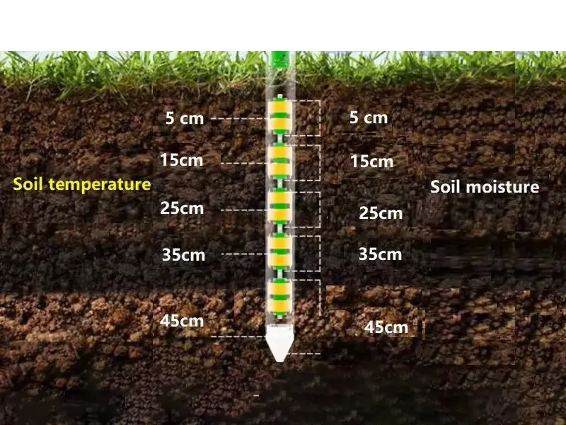 Tubular soil monitors enable farmers to track soil moisture and temperature in real time, adjust irrigation, and optimize crop growth.