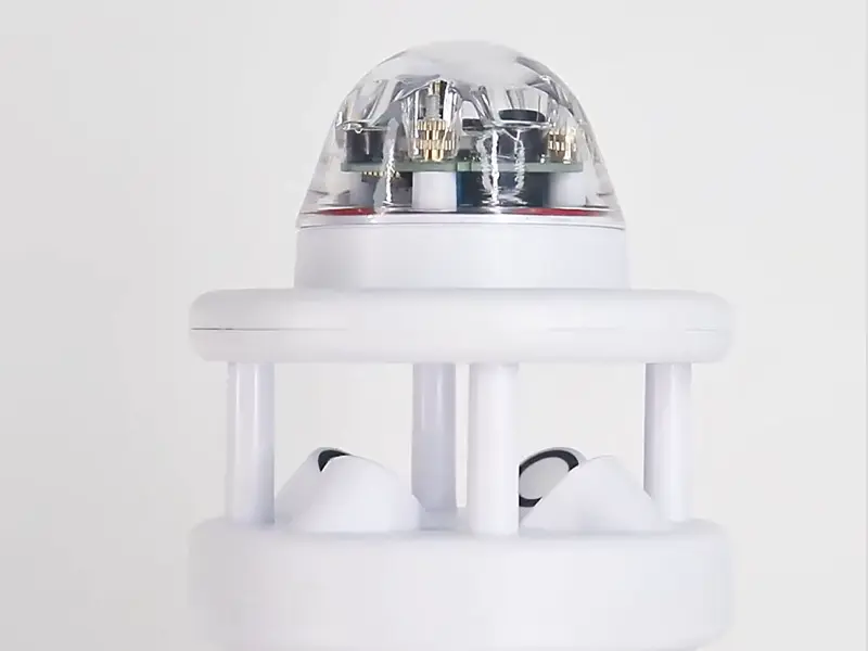 Combines air temperature, humidity, wind speed, wind direction, barometric pressure, optical rainfall, and illuminance sensors in a single compact housing.